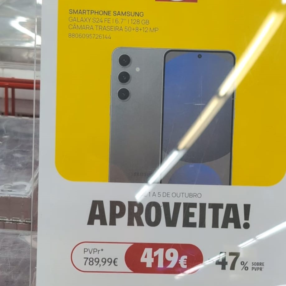 O mesmo acontece com a promoção do Galaxy S24FE. Embora o preço de €419 praticado pela Darty seja o mais baixo em Portugal (novamente, com base no KuantoKusta), a maioria das lojas está a vender este mesmo modelo de smartphone entre €429 e 460.