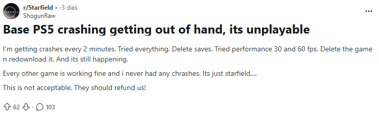 O lançamento de Starfield na PlayStation 5 ficou marcado por vários problemas técnicos que rapidamente geraram uma onda de descontentamento entre os jogadores. Apesar da expectativa elevada em torno da estreia do jogo, muitos utilizadores começaram a relatar falhas frequentes, com destaque em crashes constantes que afetam a experiência de jogo.